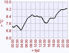 temperatuur: maximum in de nachtperiode in jaar 2026: 9.3