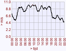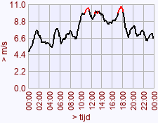 - Maximum waarde windstoot voor deze dag het vorige jaar: 11,4 (07:20)