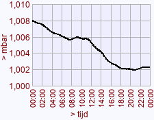 - Maximum waarde luchtdruk voor deze dag het vorige jaar: 1007,8 (00:10)