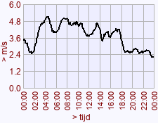 - Minimum waarde windstoot voor deze dag het vorige jaar: 3,0 (01:05)